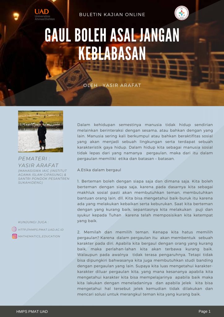 Topik Kajian ” Gaul Boleh Asal Jangan Keblabasan”