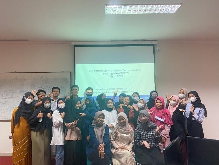 Kegiatan MAWAPRES diawali dengan melakukan sosialisasi berupa penyebaran pamflet beserta redaksi melalui story dan reels Instagram HMPS Pendidikan Matematika, grup kelas serta angkatan sebagai gambaran kepada mahasiswa Pendidikan Matematika UAD tentang MAWAPRES itu sendiri yang dimulai pada tanggal 23 Oktober 2022. Pendaftaran MAWAPRES dibuka kepada seluruh mahasiswa semester 3 dan 5 Pendidikan Matematika UAD tanggal 31 Oktober – 5 November 2022 melalui pamflet dan google form. Terdapat 8 mahasiswa yang mendaftarkan diri untuk mengikuti seleksi. Pada tanggal 8 November 2022, diadakan Technical Meeting (TM) dan diskusi bareng MAWAPRES Pendidikan Matematika tingkat FKIP tahun 2020 yaitu Ressa Fitrian secara luring di Ruang Laboratorium Komputer Pendidikan Matematika (Lantai 5). Dalam kegiatan tersebut terdapat diskusi dan motivasi dari narasumber sekaligus disertai penyampaian informasi dan teknis kepada peserta Mawapres Pendidikan Matematika yang disampaikan oleh penanggung jawab yaitu Bela Saputri Dewi.